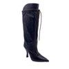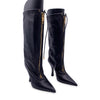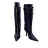 Versace Black Leather 3/4 Length Boot. It Features Gold Metal Central Zip And a Lace Fastening. Pointed Toes. Covered Heels. Heels Height: 10.5 Cm. Size: Eu 36 (The Size Shown For This Item Is The Size Indicated By The Designer On The Shoes). Made In Italy. Retail Price Is 1390 Euros.