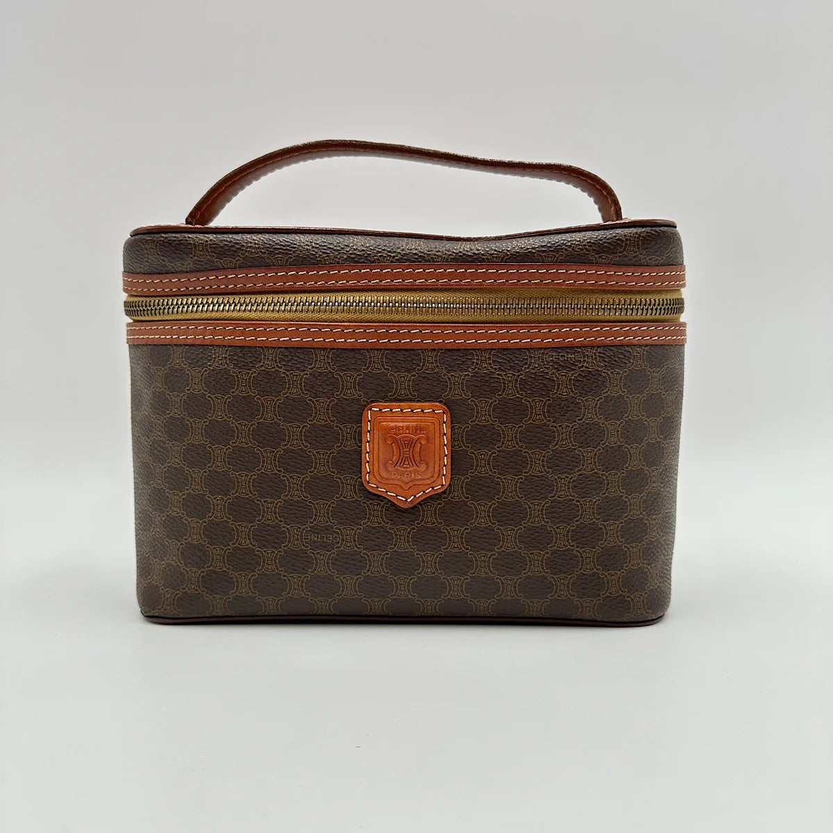 Vintage Céline vanity case in monogrammed coated canvas with natural leather trim. It can be carried by hand.. 21 x 15 cm. vintage so slight marks but remain in very good general condition. sold alone
