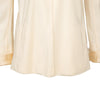 Classic and effortless, this off-white silk shirt from iconic designer Yohji Yamamoto features a loose fit and open front with a tie-knot. The lapel collar and folded cuffs provides a polished look, while the subtle graphic embroidery adds a touch of elegance.
