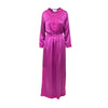 Elegant and refined, this vintage Yves Saint Laurent long dress in purple silk features a flowing silhouette, delicate purple embroidery, and a flattering elastic waist.