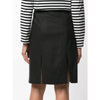 Yves Saint Laurent dark grey wool straight 90s skirt with leather detail on the waist. High waist and two frontal and back slits. Side zip closure.