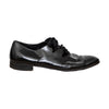 Yves Saint Laurent black patent leather shoes with sleek tapered toe. Classic formal lace-up design with glossy finish for sharp, structured styling.
