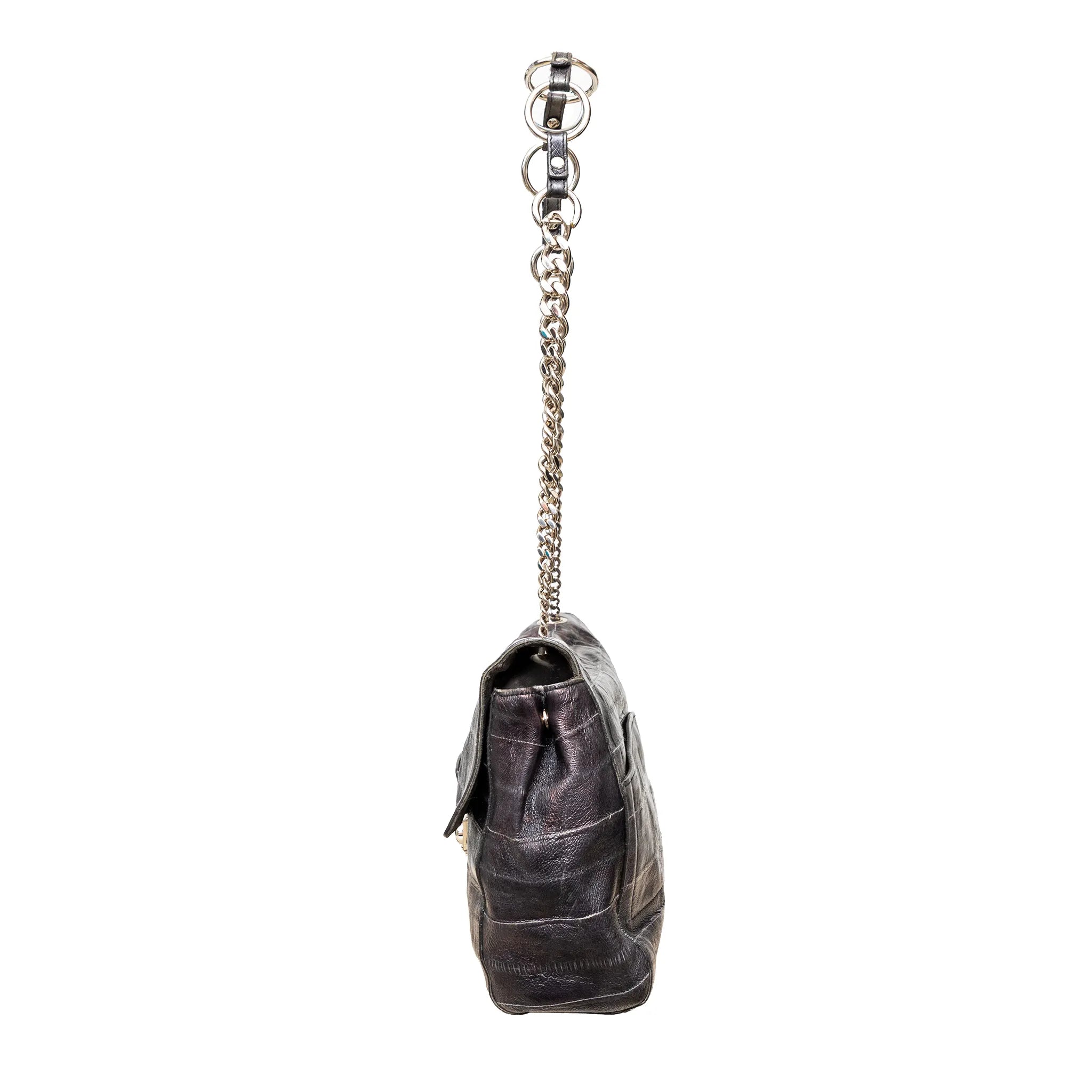 YSL Sac Le Sixieme shoulder bag in sleek black leather shines with silver-tone chain details, a structured flap, and luxe suede interior—perfect from day to night.