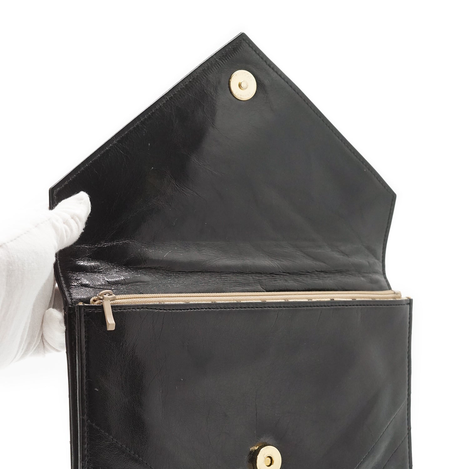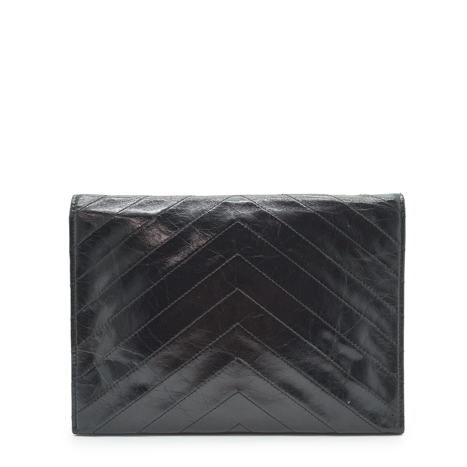 Vintage Envelope Clutch Black LeatherDepth: 6cmHeight: 17.5cmWidth: 24.5cmWidth at Top: 24cmOutside Rank: BCInside Rank: BStain: Some brown stains on the inside fabric (middle pocket)Scratch: Corner rub, some scratches on the frontPeeling: Some leather creasing overallWorn: Some signs of wear overallOdor: Slight storage smellInclude: Dust bagSKU: 7060196