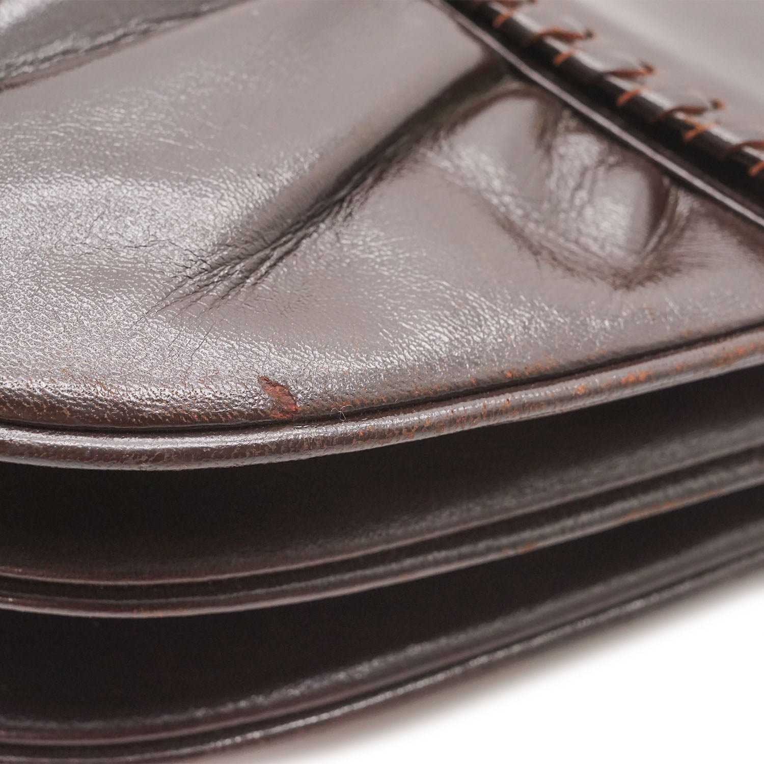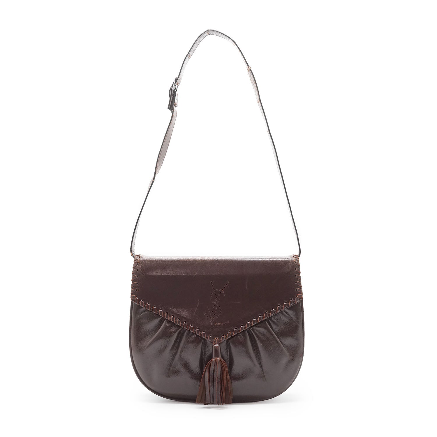 YSL Tassel Shoulder Bag Dark Brown LeatherDepth: 10cmHeight: 24cmWidth: 26.5cmShoulder Drop: 35.5cmCOutside Rank: BCInside Rank: BDiscoloration: Some leather discoloration on the strap, hardware tarnishScratch: Corner rub with visible scratch on one side, some rubbing marks/scratches overall (front flap, back, strap)Peeling: Some leather cracking/peeling on the strapWorn: Previous use evidentOdor: Slight storage smellComments: The front tassel is sligthly detaching on some areas (some leather cracks)SKU: 7060190