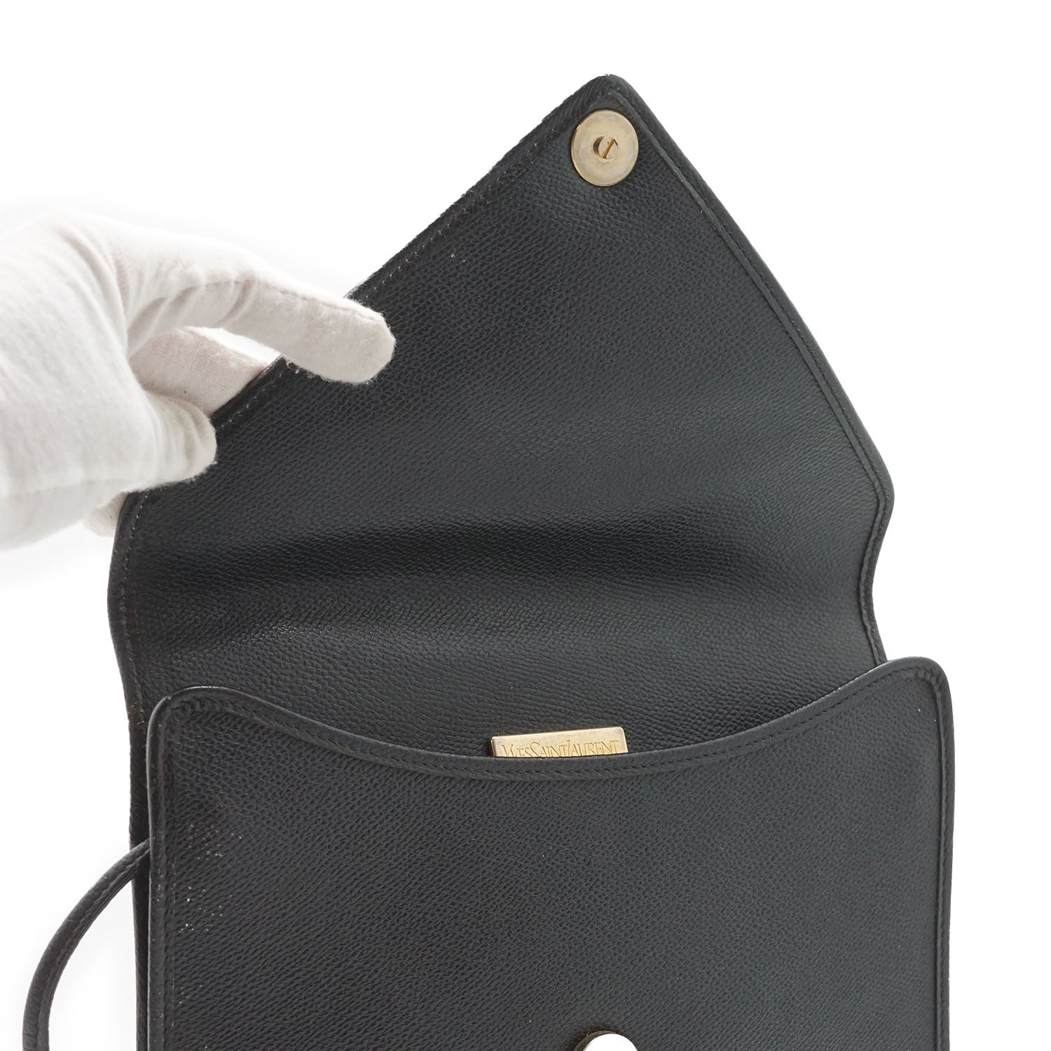 YSL Vintage Square Envelope Crossbody Bag Black LeatherDepth: 3cmHeight: 21cmWidth: 23.5cmShoulder Drop: 52cmCOutside Rank: BCInside Rank: BDiscoloration: Visible hardware tarnish (front logo plate)Scratch: Some scratches/rubbing marks overall (strap, front, back, hardware)Peeling: Some leather peeling on the strapWorn: In generalOdor: No odor presentComments: The zipper of the inside pocket is stiff/hard to open and closeSKU: 7060192