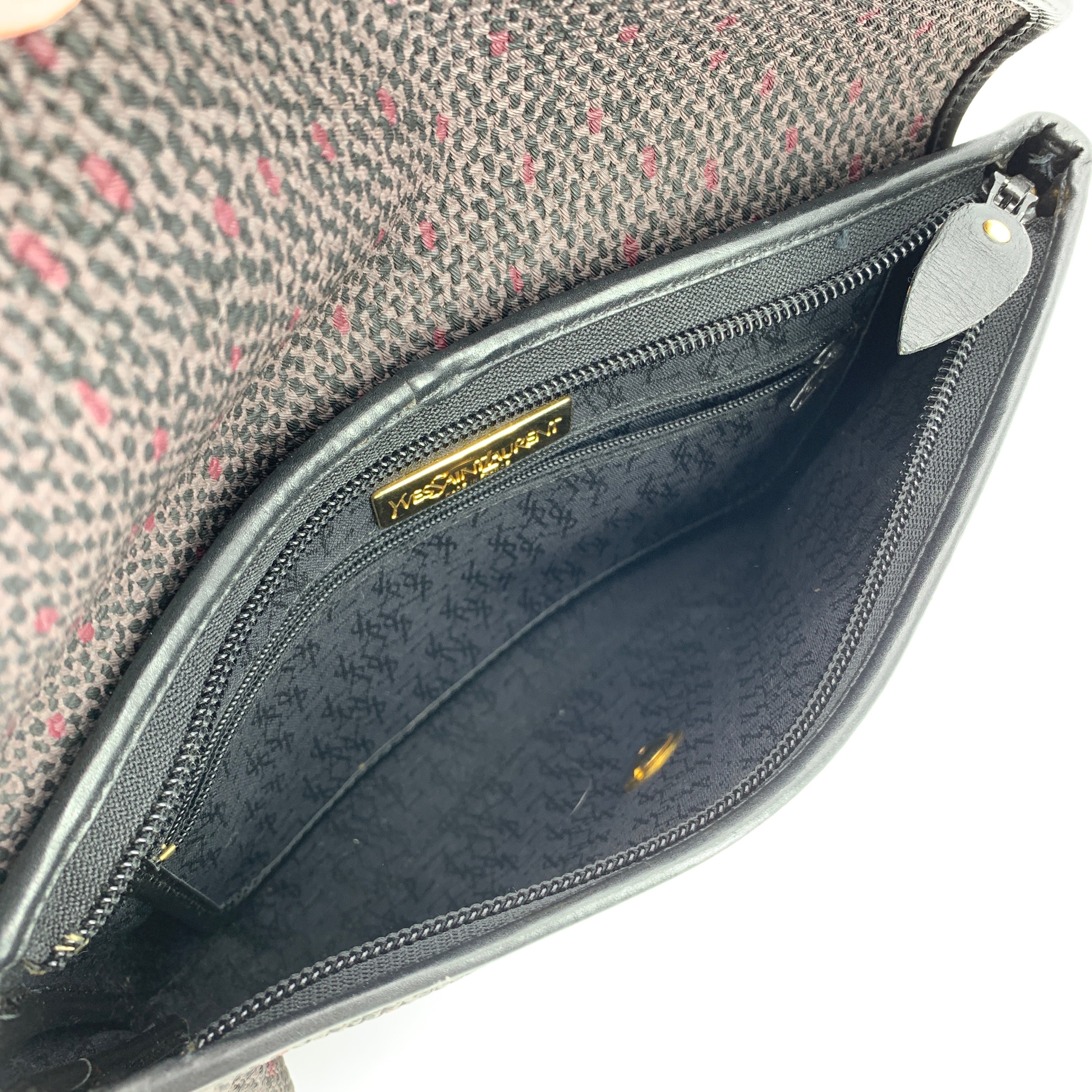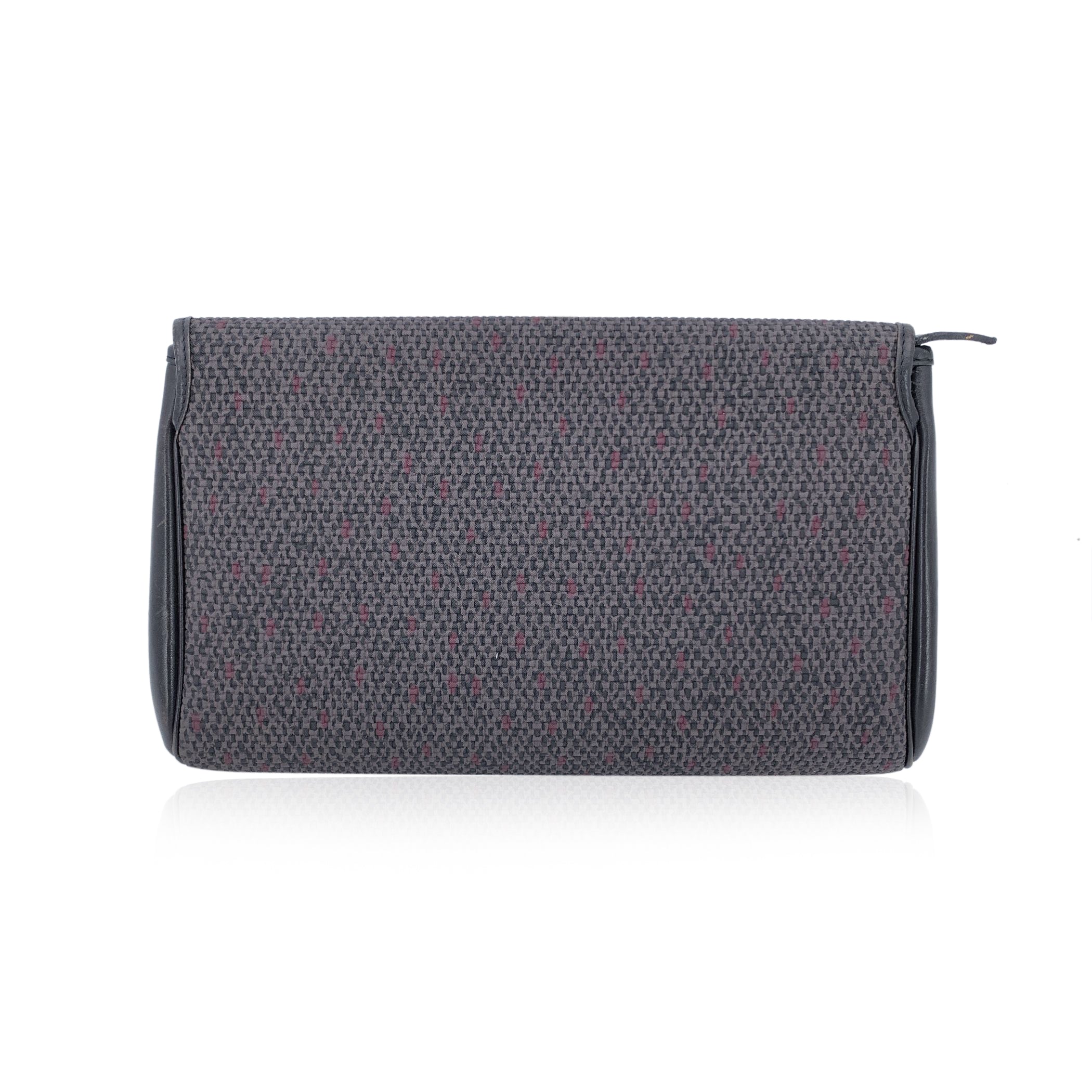 Chic And Timeless, This Vintage Yves Saint Laurent Clutch Is a Refined Statement Of Understated Luxury. Crafted From Grey Textured Vinyl Canvas With Black Leather Trim, It Effortlessly Balances Classic Elegance With a Striking Pop Of Color. The Front Is Adorned With a Signature Gold Metal Triangle Tab, And The Bag Features Both a Flap With Magnetic Button Closure And An Upper Zipper Closure, Offering Added Security And a Layered, Structured Design. Inside, The Clutch Is Lined In Black Fabric And Includes a Side Zip Flat Pocket To Keep Your Essentials Neatly Organized. Finished With The Original 'Yves Saint Laurent - Made In France' Tag, This Piece Showcases The Sophisticated Craftsmanship And Timeless Appeal Of Vintage Ysl - a True Collectible For Lovers Of Classic French Fashion.