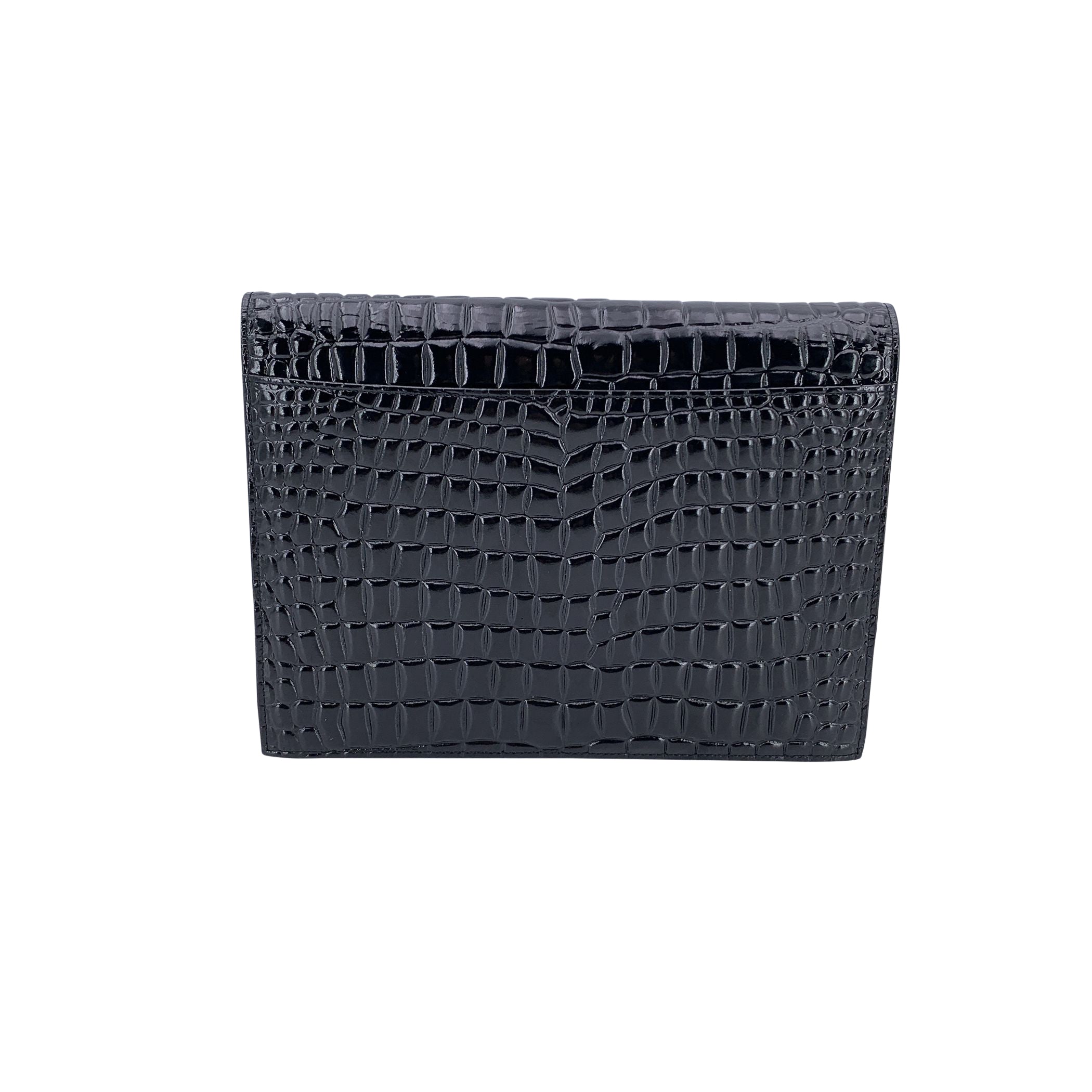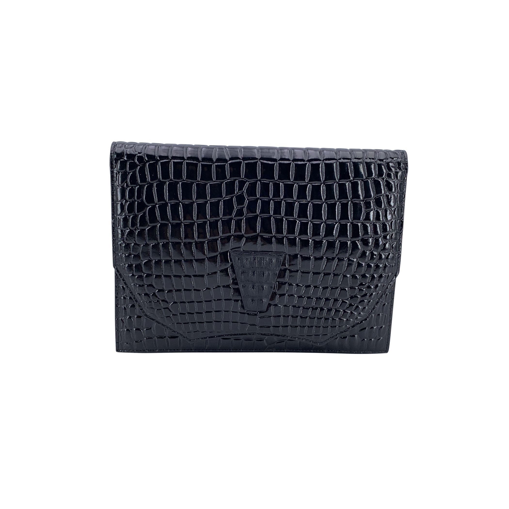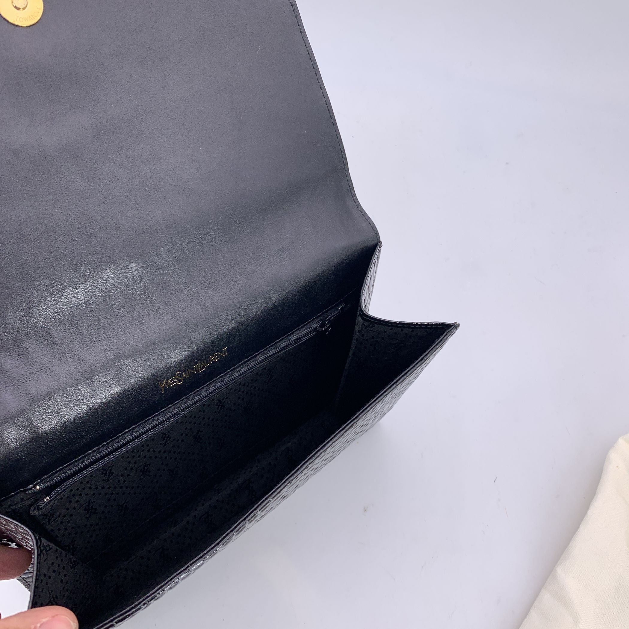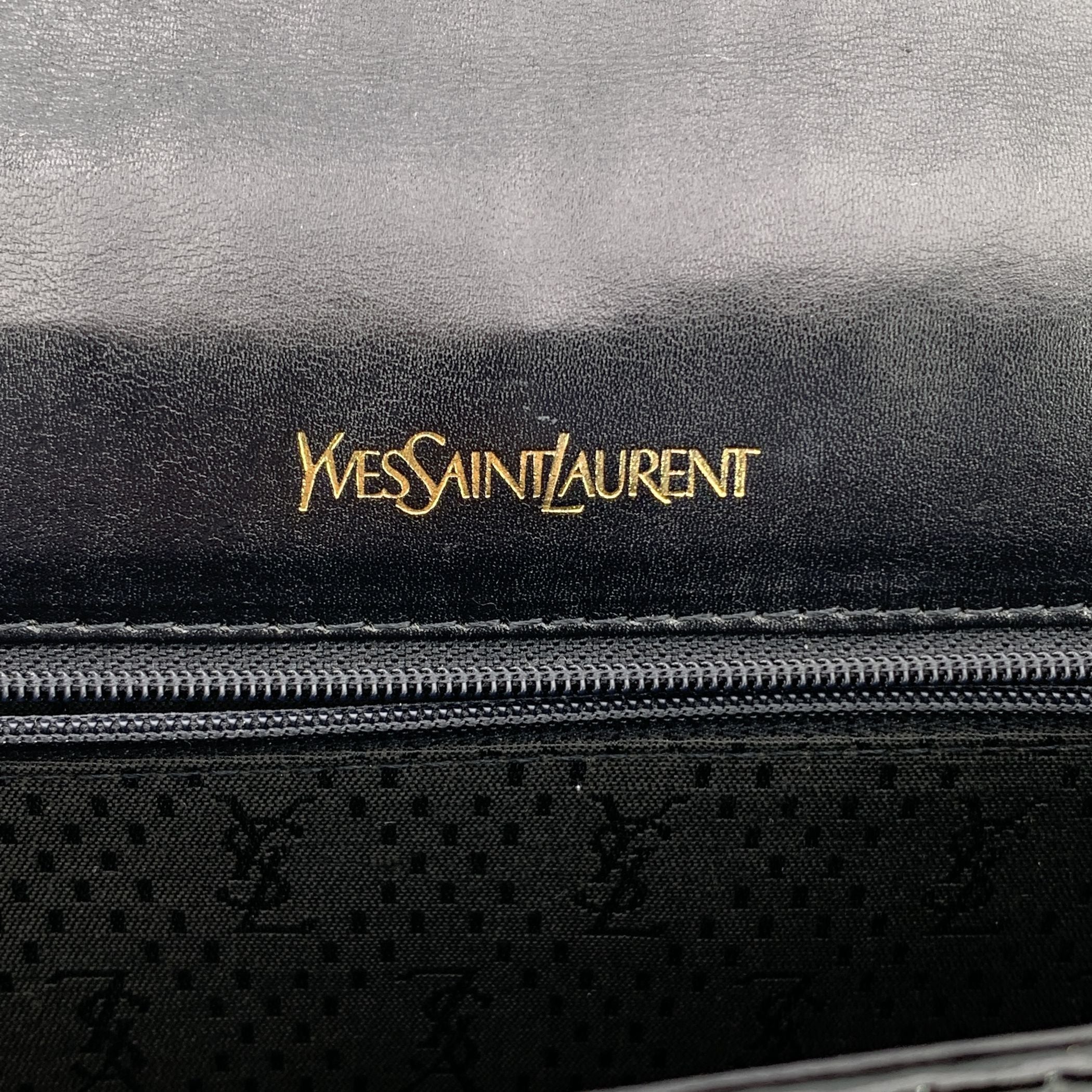 Sleek, Striking, And Effortlessly Chic, This Vintage Yves Saint Laurent Clutch Captures The Bold Sophistication Of The Maison's Golden Era. Crafted In Black Embossed Patent Leather, It Shines With a Lacquered Finish That Adds Just The Right Amount Of Edge To Its Timeless Silhouette. The Structured Flap Features a Discreet Magnetic Button Closure, While a Rear Open Pocket Offers Quick Access To Essentials. Inside, You'll Find a Black Fabric Lining With a Side Zip Pocket For Added Organization, And The Unmistakable 'Yves Saint Laurent' Embossed On The Interior - a Quiet Signature Of Parisian Luxury. Perfect For Evening Affairs Or Elevating a Minimalist Day Look, This Clutch Is a Classic Piece With Just Enough Vintage Attitude To Stand Out In Any Crowd.