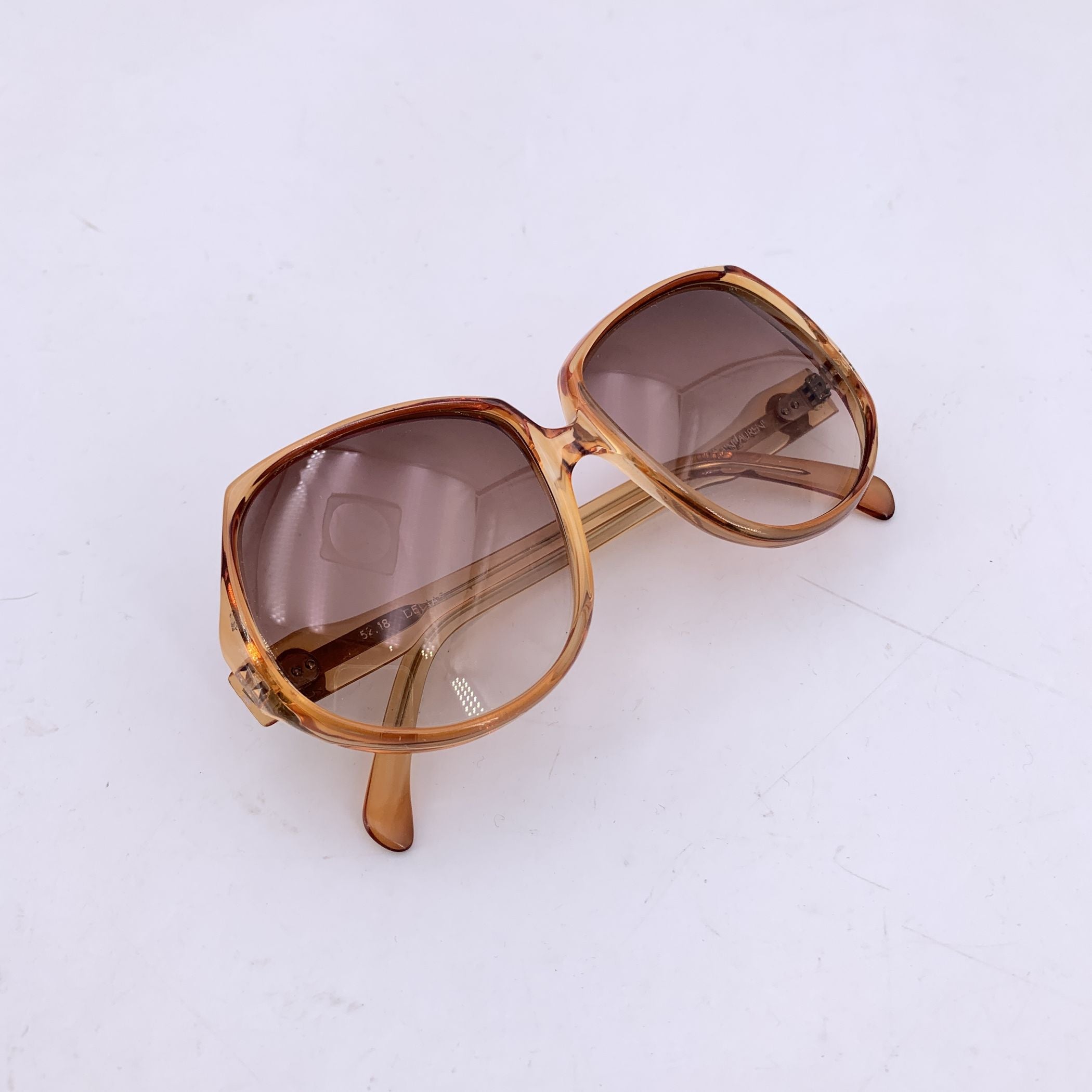 A Timeless Piece From The Golden Era Of Designer Eyewear, These Vintage Yves Saint Laurent Sunglasses, Model Delias (52/18), Offer Understated Elegance With a Distinctly French Touch. Made In France, The Frame Features a Warm, Classic Light Brown/beige Acetate Design That Effortlessly Complements a Variety Of Looks-from Everyday Chic To Elevated Vintage Styling. Fitted With Gradient Brown Lenses That Provide 100% Uv Protection, These Sunglasses Blend Function And Fashion With Ease. The Ysl Logos On The Temples Add a Signature Mark Of Luxury, Making The Delias Model a Sophisticated And Versatile Addition To Any Eyewear Collection. Perfect For Those Who Appreciate Refined Vintage Style With a Hint Of Quiet Glamour.